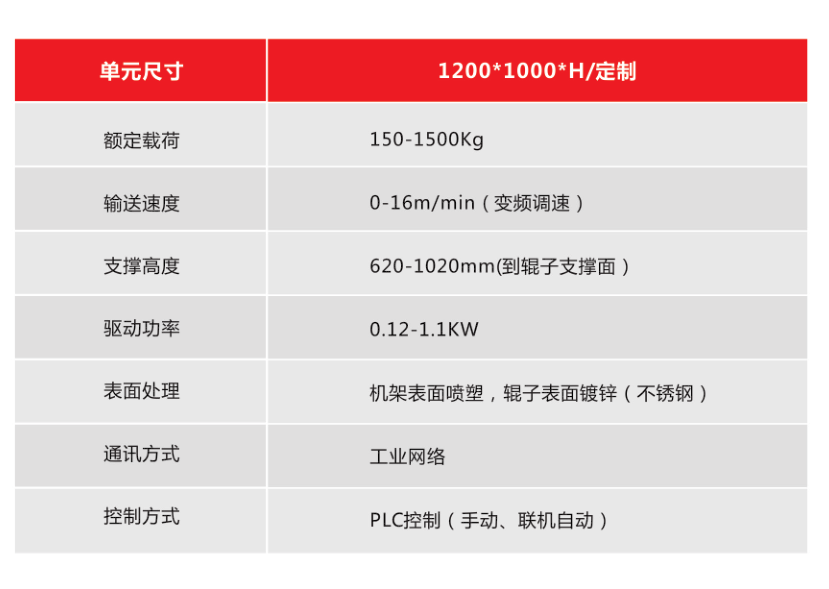 辊式输送机主要由辊筒、机架、支腿、链条(带)、驱动等部分组成,具有输送量大、 速度快、运转轻快,能够实现多品种共线分流输送的特点。辊筒输送机之间易于衔 接过度,可用多条辊筒线及其它输送设备或专机组成复杂的物流输送系统,完成多 方面的工艺需求。
